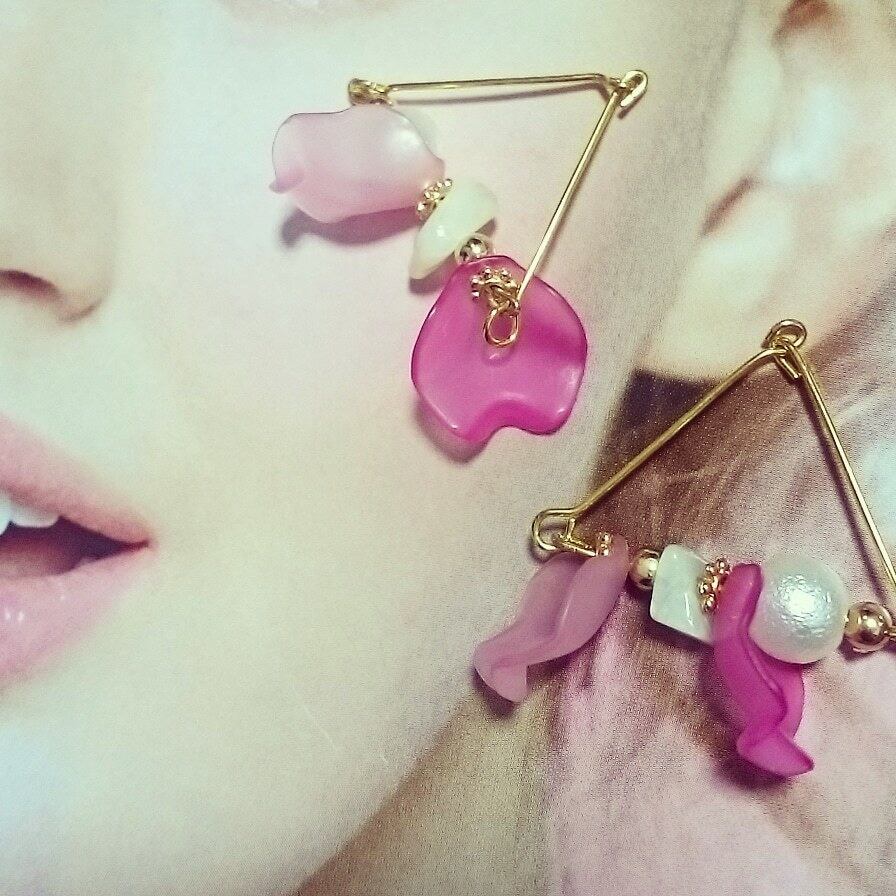 花びらグラデーションビジュー・トライアングルフープピアス/イヤリング