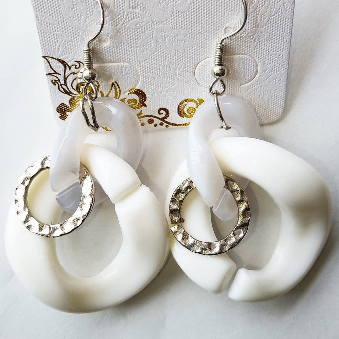 大人可愛い!ホワイト×マーブルグレー×シルバーで上品な大ぶりフープピアスです。